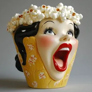 «Snow white popcorn bucket just her head with her mouth wide open»