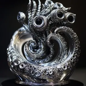 «A highly detailed sculpture of a multi-eyed, tentacled metal mon...»
