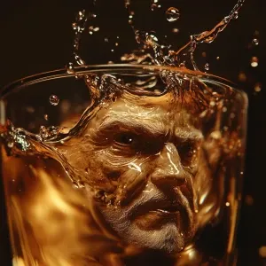 «Macro photography. A single drop of coffee forms the face of a w...»