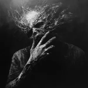 «A celestial city shrouded in darkness, its ominous silhouette lo...»