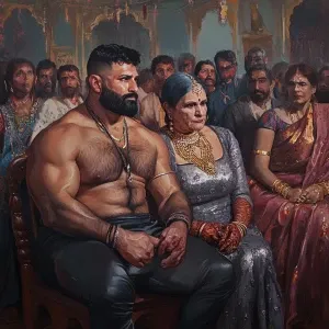 «Realism art 1:1,A muscular, perspiring man is in a Jaipur jewelr...»