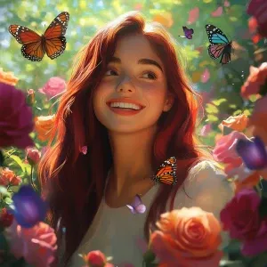 «In a dimly lit room, a woman stands before an ornate, cracked mi...»