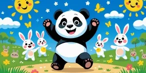 «Panda waves hands, stretches tall toward the sky, then bends to...»