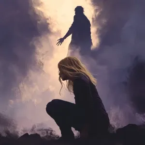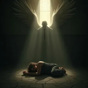 «Create an image of a guardian angel's soft whisper materializing...»