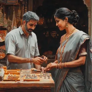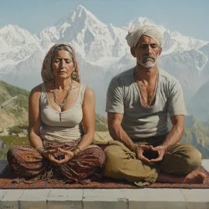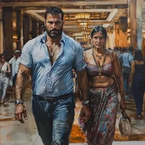 «Realistic painting 1:1,A muscular man and his 50-year-old Kashmi...»