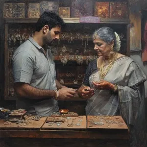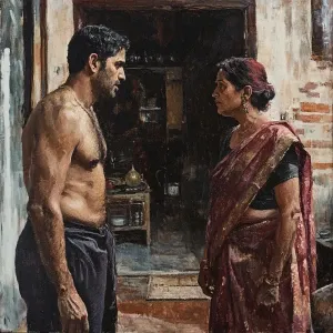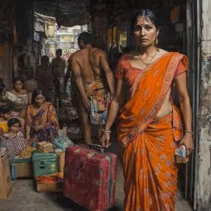 «Realism painting a 54-year-old Gujarati housemaid wearing a brig...»