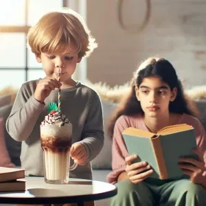 «Draw a toddler drinking his teenage sister’s Frappuccino»