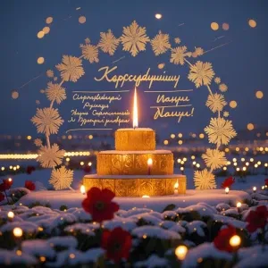 «Создайте праздничное изображение с поздравительным баннером, на...»