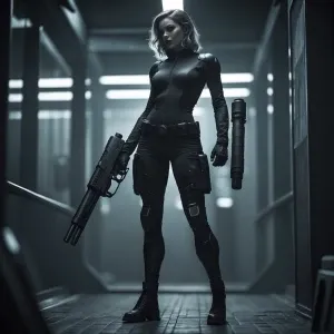 «A futuristic woman with powerful, mechanical leg that resemble m...»