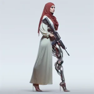 «A futuristic woman with powerful 1 mechanical leg that resemble...»