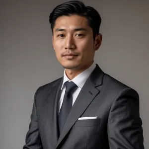 «Photography, photo for resume, an Asian man in a suit, looking c...»