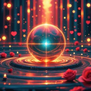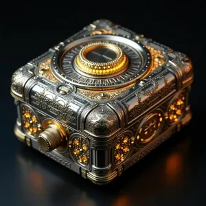 «In the midst of a celestial post-modern time portal, hues of gol...»