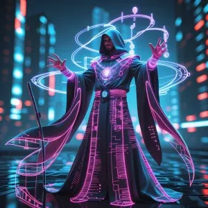 «A technologically enhanced sorcerer, glowing with digital energy...»
