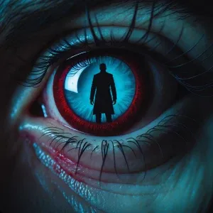 «A close-up of a wide-open eye with an expression of sheer terror...»