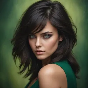 «Female, 25 years old, sensual expression, dark hair, green eyes,...»