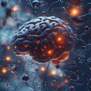 «Illustrate a human brain with neurons illuminated and actively f...»