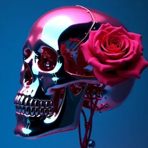 «A chrome skull and a velvet rose, rendered in vibrant pink and e...»