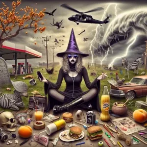 «A futuristic portrait of a lands cape of an erupting volcano. Th...»