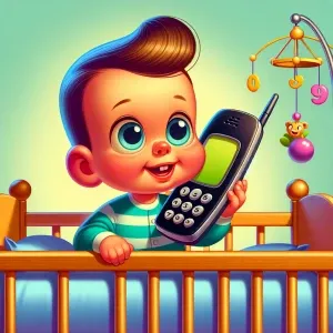 «A cartoon drawing of a baby in the womb answering a cellphone»