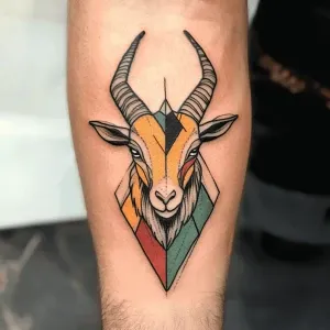 «Colourful geometric tattoo of a wild goat, front on, sketch styl...»