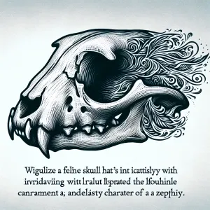 «Create an image of a cat skull with delicate, wind-inspired engr...»