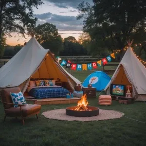 «Organize an outdoor boys' glamping-themed birthday sleepover par...»