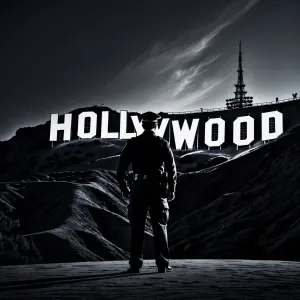 «A police officer standing at the base of the hill, gazing up at...»