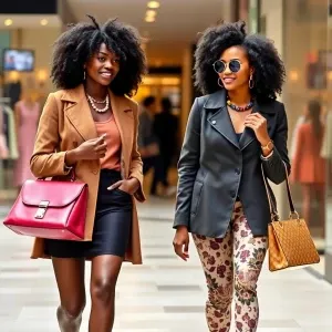 «2 African American women shopping, wearing designer clothes and...»