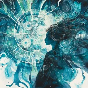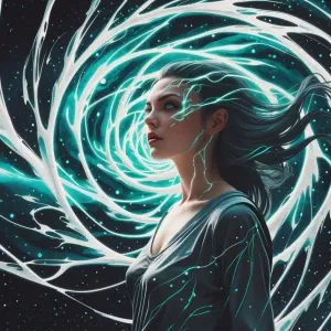 «Create a watercolor illustration of a woman radiating a supernat...»