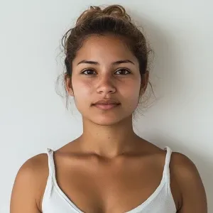 «Create an image of a 23-year-old Mexican woman with a slightly c...»