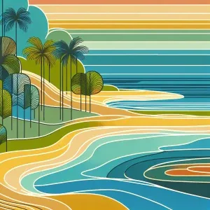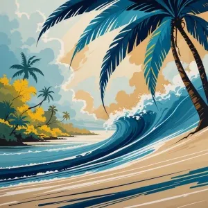 «Design an abstract painting inspired by a tranquil beach setting...»