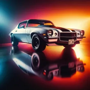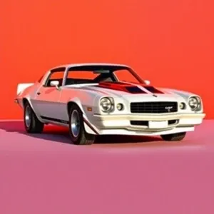 «"Visualize a 1974 Camaro with a sleek white paint job accentuate...»