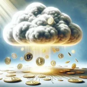 «Create an image illustrating a cumulus cloud showering assorted...»