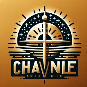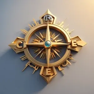 «A minimalist cross merging into a rising sun or compass needle,...»