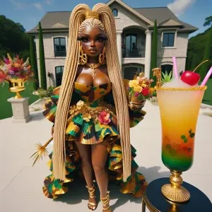 «drone top view life size Jamacian curvy woman brown eyes, holdi...»