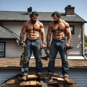 «Two big beefy body muscles bodybuilder eggplant black bearded me...»