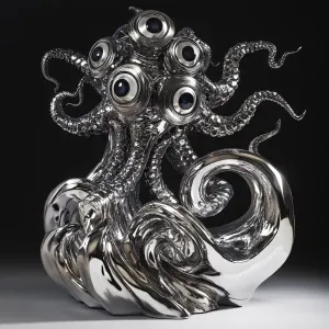 «A highly detailed sculpture of a multi-eyed, tentacled metal mon...»
