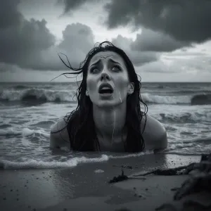 «black and white, high-contrast shot of Dahlia Valentina as she s...»