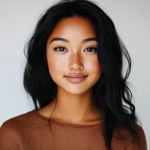 «Generate a portrait of a joyful 22-year-old Blasian woman with a...»
