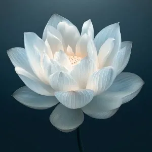 «Create an image of a lotus flower in full bloom, featuring broad...»