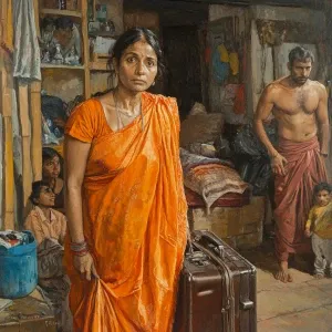 «Realism painting a 54-year-old Gujarati housemaid wearing a brig...»