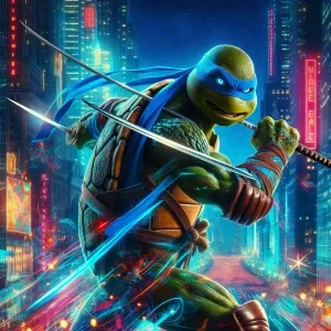 «Create an image of Leonardo from the Teenage Mutant Ninja Turtle...»