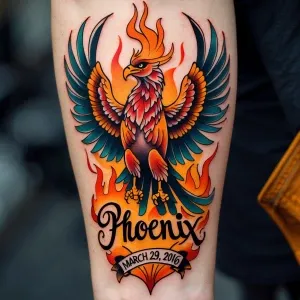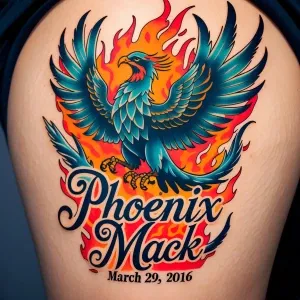 «Design a phoenix-themed tattoo incorporating the name "Phoenix M...»