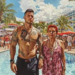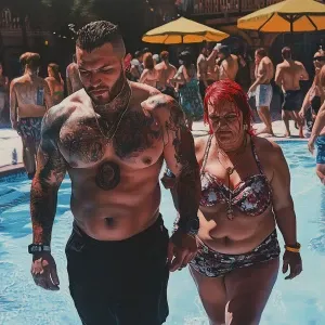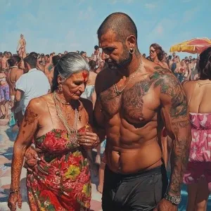 «Hyperrealistic painting 1:1,A muscular man and his 50-year-old K...»