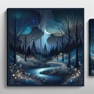 «Envision a 'Midnight Forest' art print to evoke a sense of an en...»